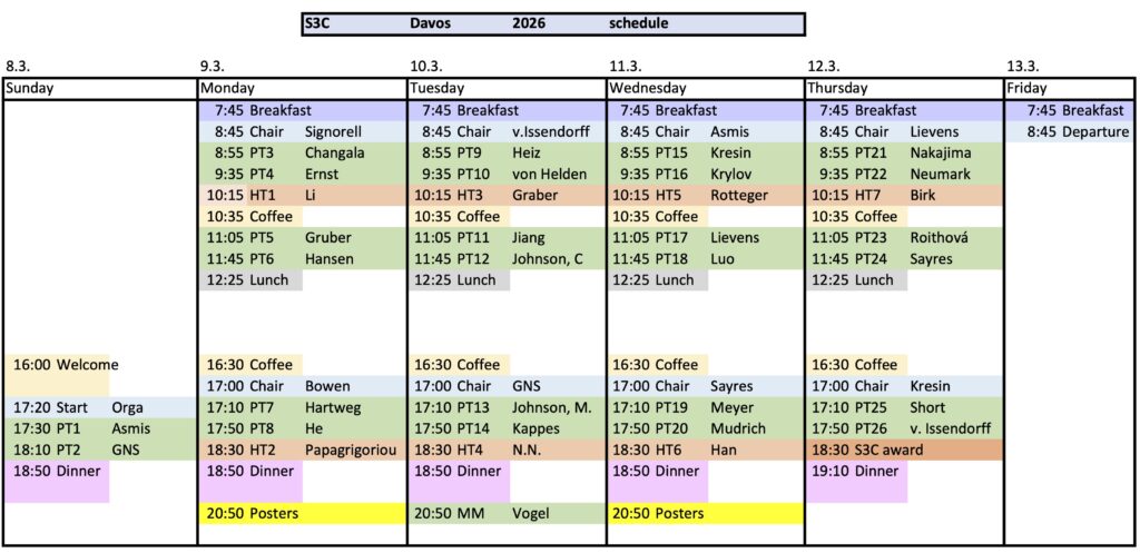 S3C2 will comprise several sessions on cutting edge cluster research and provide a forum for scientists working in the field of small clusters and nanoparticles. It provides for an informal atmosphere, it acts as a marketplace of ideas, and it sustains networking with old and new partners. In the afternoons, it keeps plenty of time for discussions and working group meetings. Young students and scientists have been encouraged to participate. In addition to a series of Invited Talks this years meeting will also feature Hot Topic Presentations.